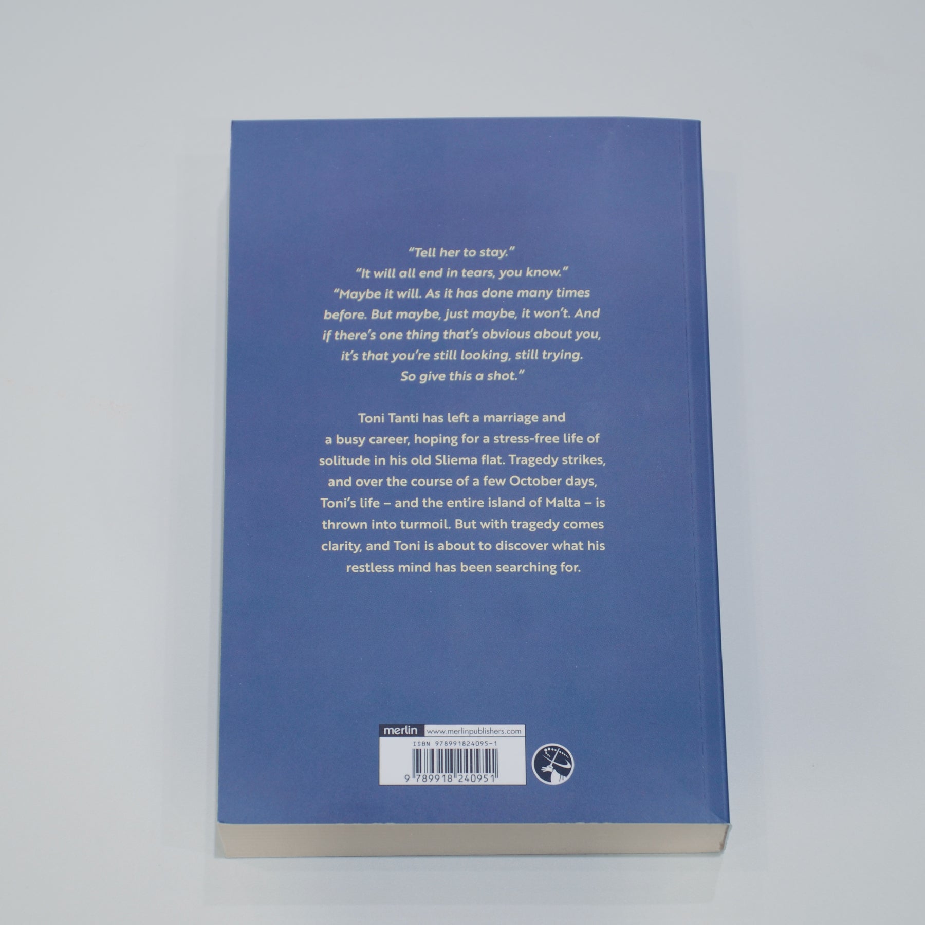 Toni Tanti has left a marriage and a busy career, hoping for a stress-free life of solitude in his old Sliema flat. Tragedy strikes, and over the course of a few October days, Toni’s life — and the entire island of Malta — is thrown into turmoil. But with tragedy comes clarity, and Toni is about to discover what his restless mind has been searching for.