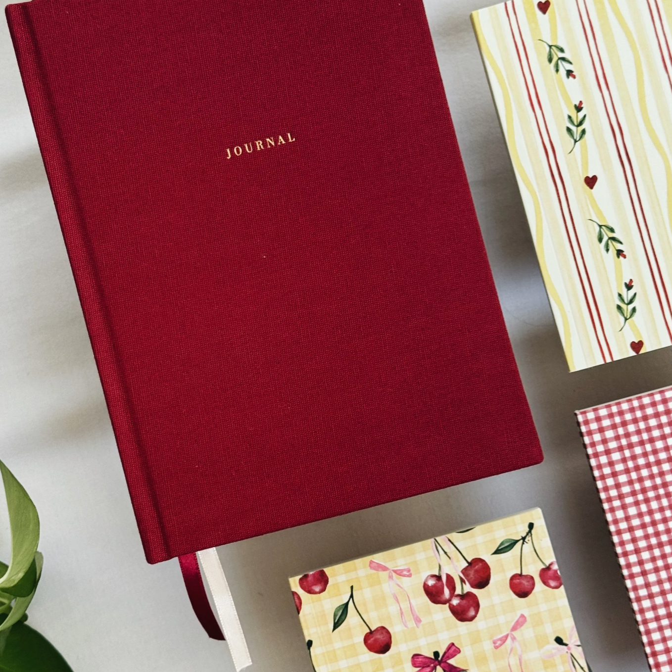 This linen journal is designed for those who love a touch of richness and warmth in their daily writing ritual. Wrapped in a deep burgundy linen cover with gold foil text, it blends sophistication with simplicity — a notebook that feels as special as the words you’ll fill it with.