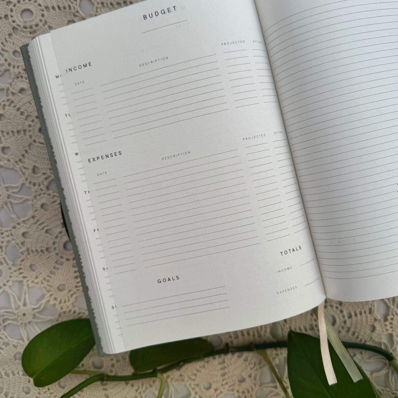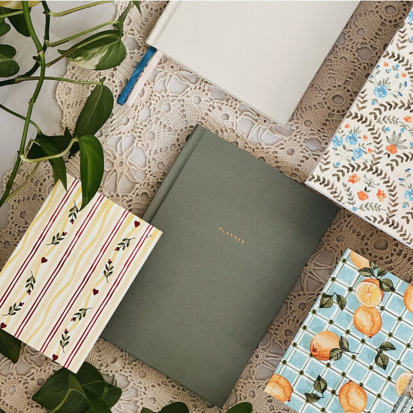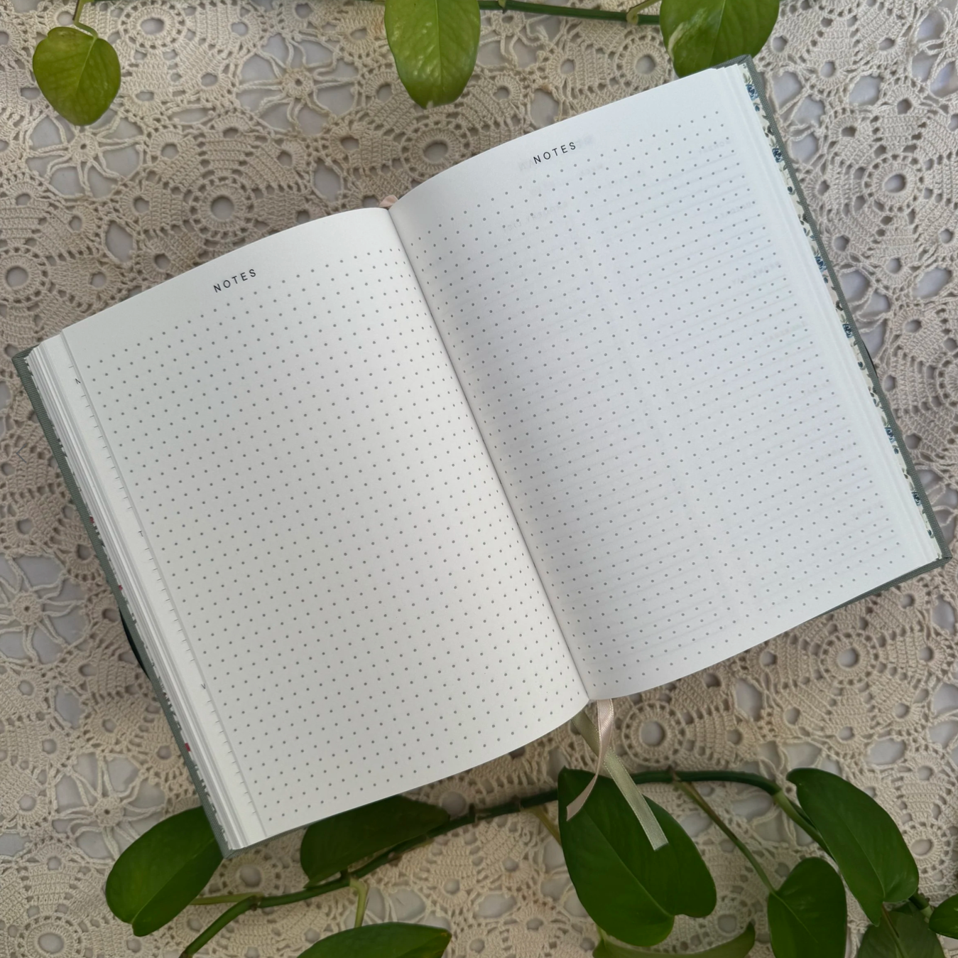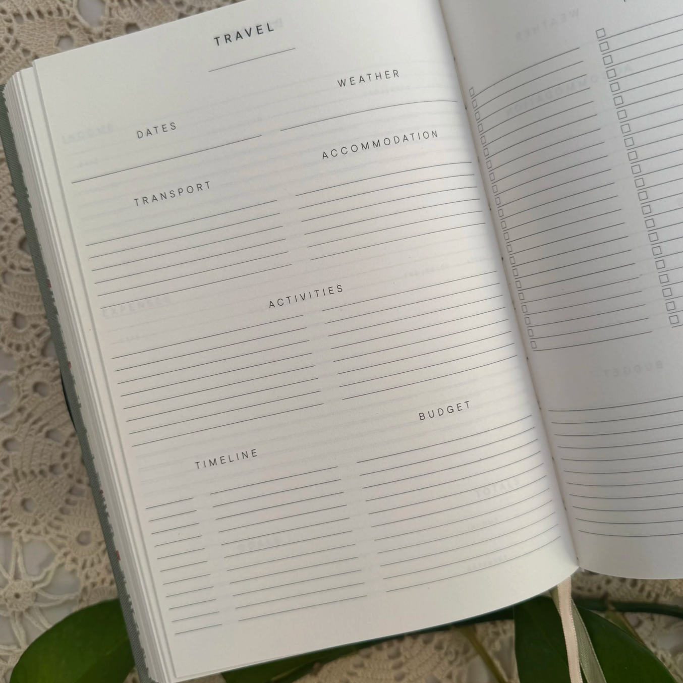 This undated planner is a gentle invitation to organise your days with clarity, calm, and intention. Minimal and elegant by design, it brings together thoughtful structure and timeless aesthetics to support you through the rhythms of everyday life. Hardbound in a linen cover with delicate gold-foil detailing, it feels as beautiful in your hands as it looks on your desk.